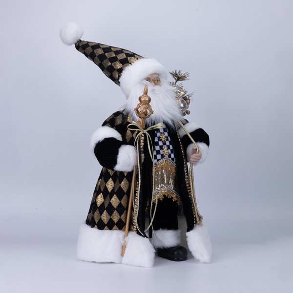 ΑΓΙΟΣ ΒΑΣΙΛΗΣ ΜΕ ΠΟΛΥΤΕΛΕΣ ΠΑΛΤΟ ΣΕ ΜΟΤΙΒΟ ΡΟΜΒΩΝ ΜΑΥΡΟ, ΛΕΥΚΟ ΚΑΙ ΧΡΥΣΟ, 45cm (600-49338)