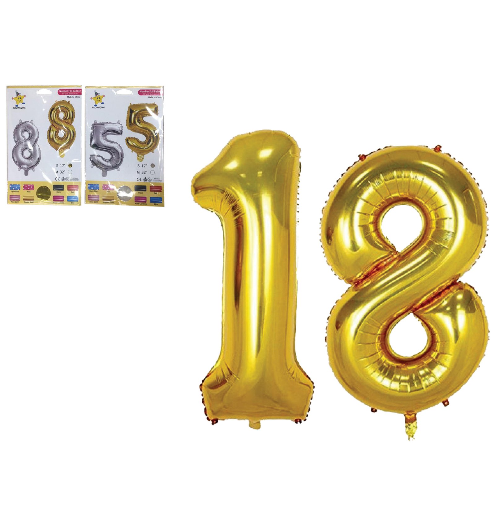 Αλουμινένια μπαλόνια με αριθμούς 0-9 ασημί – χρυσό [00405193]