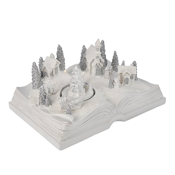 ΑΝΟΙΧΤΟ ΒΙΒΛΙΟ ΜΕ ΧΡΙΣΤΟΥΓΕΝΝΙΑΤΙΚΟ ΧΙΟΝΙΣΜΕΝΟ ΤΟΠΙΟ, ΜΠΑΤΑΡΙΑΣ, 21.7×14.8×10.2cm (600-48503)