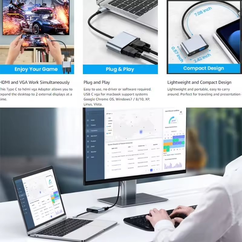 Αντάπτορας 2 σε 1 Type-C σε HDTV VGA hub (06.005.0104)
