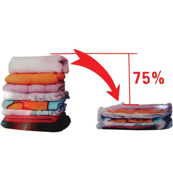 - Αποθηκεύστε τα ρούχα, παπλώματα, μαξιλάρια, σεντόνια, κουρτίνες, ή ότι άλλο θέλετε χωρίς να πιάνουν χώρο. Αφαιρείτε τον αέρα από το ειδικό στόμιο με την ηλεκτρική σκούπα και μειώνεται ο όγκος στο 25% του αρχικού του μεγέθους. Προφυλλάσσουν από τη σκόνη, την υγρασία και το σκώρο.