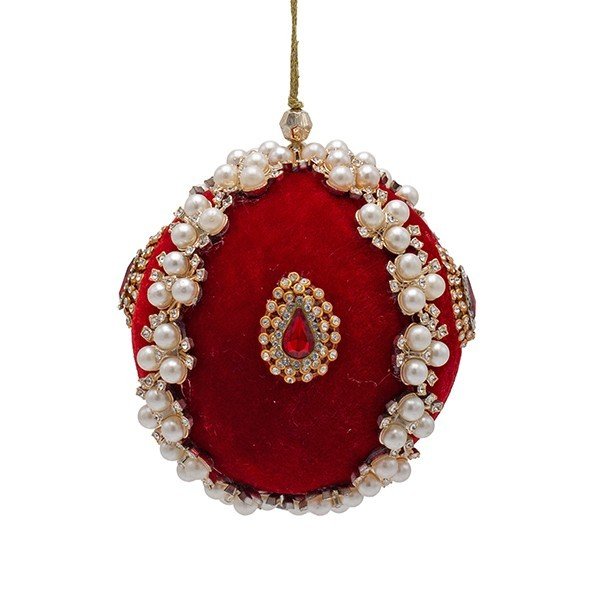 ΒΕΛΟΥΔΙΝΗ ΜΠΑΛΑ, ΚΟΚΚΙΝΗ, ΠΟΛΥΤΕΛΕΙΑΣ, ΜΕ ΛΕΥΚΕΣ ΠΕΡΛΕΣ ΚΑΙ ΚΟΚΚΙΝΑ ΠΕΤΡΑΔΙΑ, 10cm (600-49162)