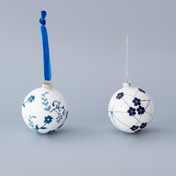 ΓΥΑΛΙΝΗ ΜΠΑΛΑ, ΛΕΥΚΗ ΜΕ ΜΠΛΕ ΛΟΥΛΟΥΔΙΑ, 2 ΣΧΕΔΙΑ, ΣΕΤ 4ΤΜΧ, 8cm (600-45052)