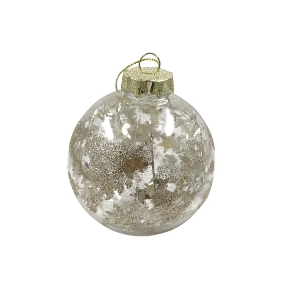 Διάφανη Χριστουγεννιάτικη μπάλα με χρυσά διακοσμητικό φύλλα Φ8cm [00001294]