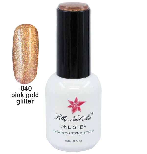 Ημιμόνιμο μανό one step 15ml – Pink gold glitter [40504001-040]