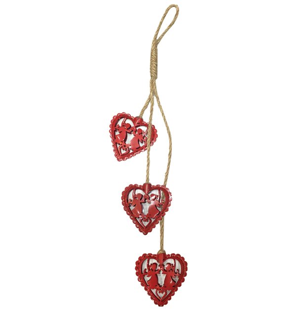 Κόκκινο μεταλλικό κρεμαστό Χριστουγεννιάτικο στολίδι καρδούλα [00001163]