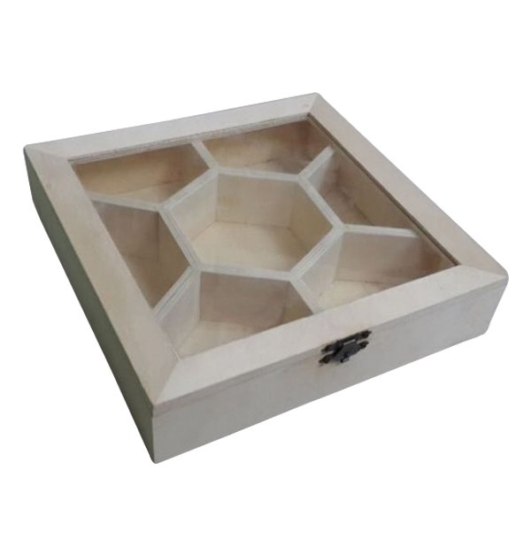 Ξύλινη αλουστράριστη θήκη τσαγιού 7 θέσεων [20601293]