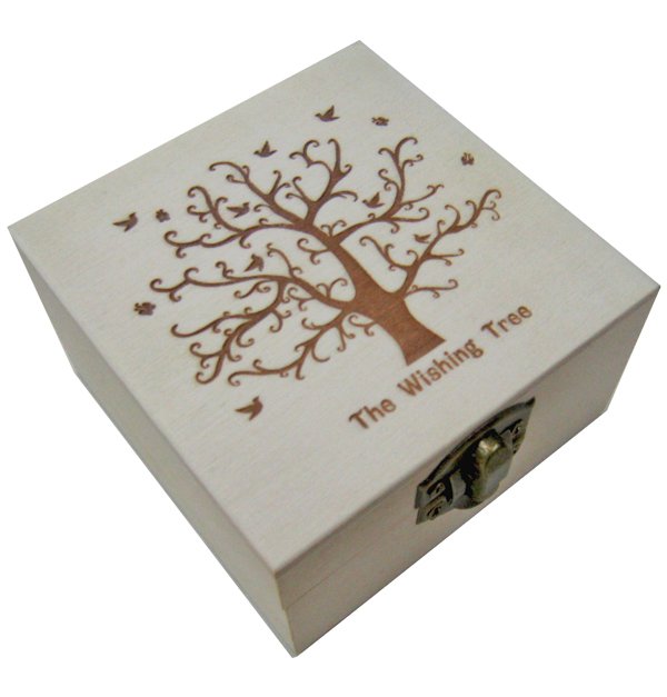Ξύλινο αλουστράριστο τετράγωνο κουτί με πυρογραφία “The Wishing Tree” [20601319]