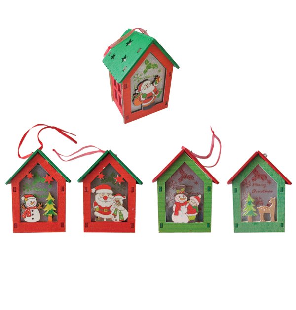 Ξύλινο κρεμαστό στολίδι σπιτάκι με φως κωδικός [00001557]
