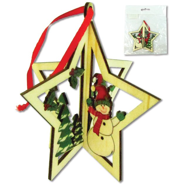 Ξύλινο τρισδιάστατο κρεμαστό Χριστουγεννιάτικο στολίδι αστέρι 10cm [00001058]
