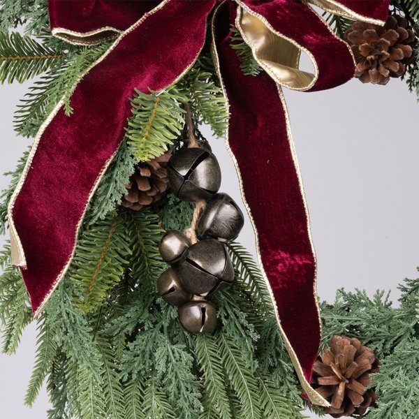 ΠΡΑΣΙΝΟ ΣΤΕΦΑΝΙ ΜΕ ΡΟΔΙΑ ΚΑΙ ΒΕΛΟΥΔΙΝΟ ΜΠΟΡΝΤΟ ΦΙΟΓΚΟ, 66cm (600-49346)