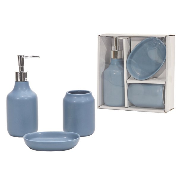 Σετ μπάνιου 3 τεμαχίων κεραμικό μπλε [77706953]