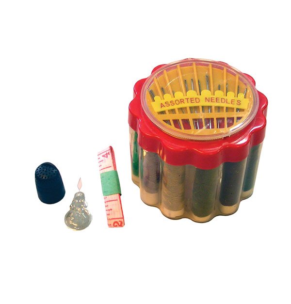 Το σετ περιλαμβάνει: κλωστές, βελόνες, μεζούρα, δαχτυλήθρα, ψαλιδάκι, κ.α.