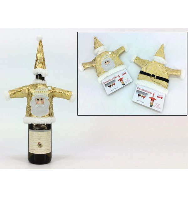 Σετ 2 χρυσές θήκες μπουκαλιού Αγιος Βασίλης [00002484]