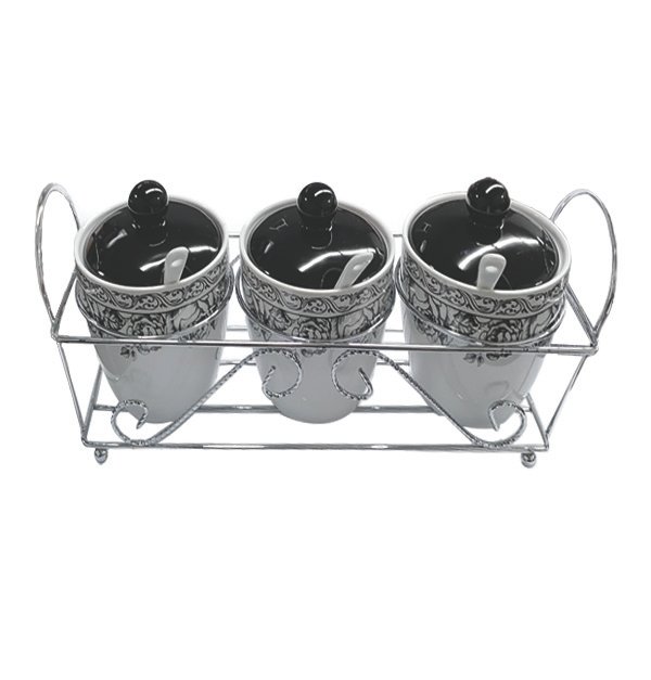 Σετ 3 κεραμικά βάζα με κουταλάκια σε μεταλλική βάση [00109324-1]