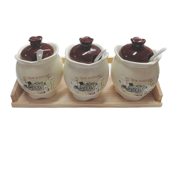 Σετ 3 κεραμικά βάζα με κουταλάκια σε ξύλινη βάση [00109342]