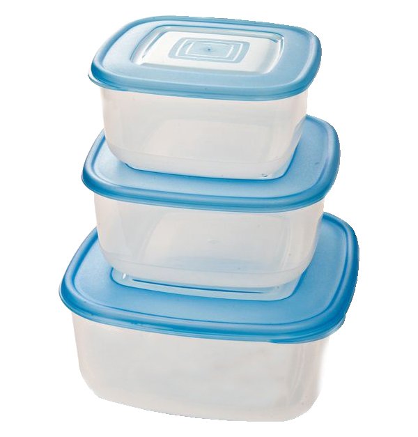 Σετ 3 πλαστικά τετράγωνα φαγητοδοχεία 750ml, 1,2lt & 2lt κατάλληλα για κατάψυξη