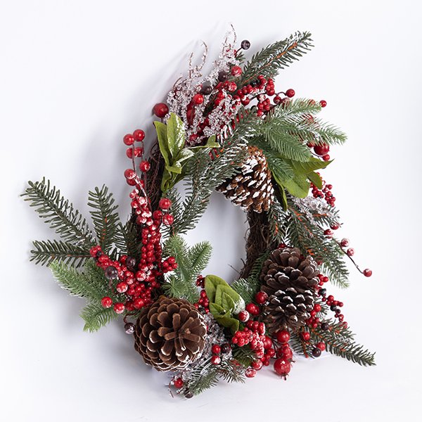 ΣΤΕΦΑΝΙ ΜΕ ΧΙΟΝΙΣΜΕΝΑ BERRIES ΚΑΙ ΚΟΥΚΟΥΝΑΡΙΑ, 55cm (600-46632)