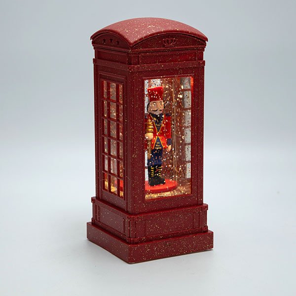 Κατηγορία 8.8*8.8*21CM 1L warm white LED light telephone booth with walnut soldier+water+motor,with with 3*AA battery box,battery not include