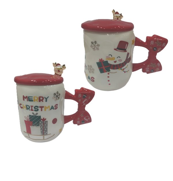 Χριστουγεννιάτικη κούπα με καπάκι κ κουταλάκι 450ml [00001919]
