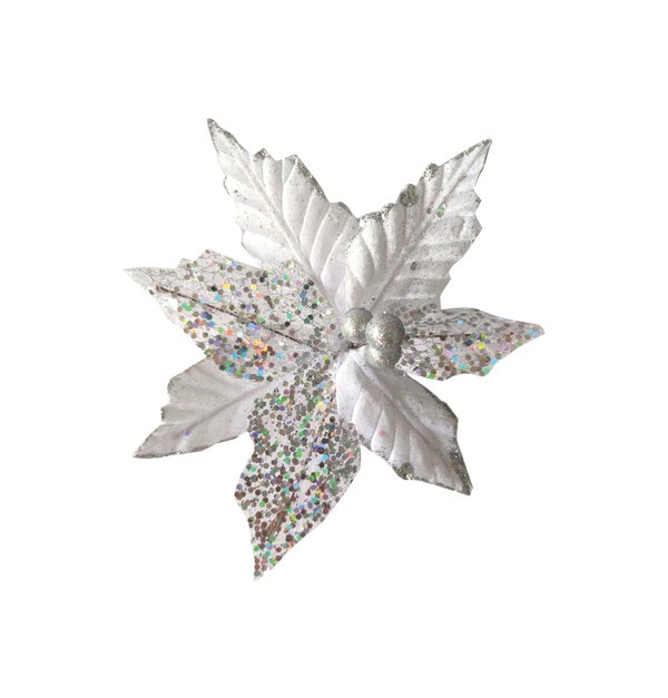 Χριστουγεννιάτικο ασημί-λευκό διακοσμητικό λουλούδι Ø20cm [00001539]
