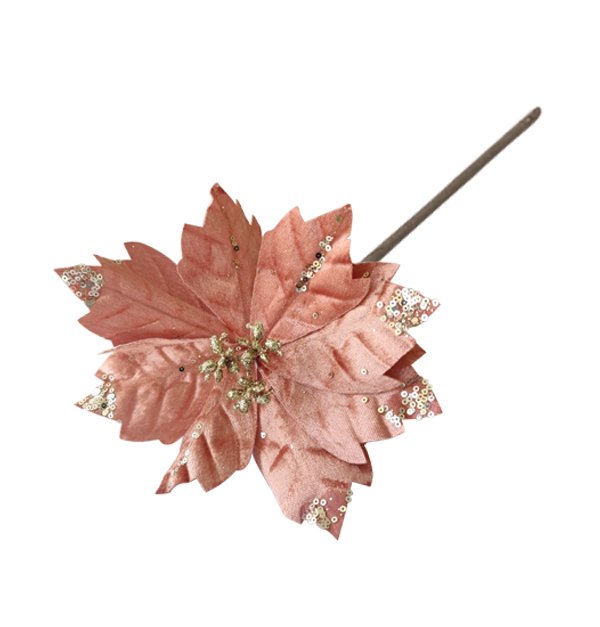 Χριστουγεννιάτικο διακοσμητικό λουλούδι βελουτέ ροζ Ø20cm [00001534]