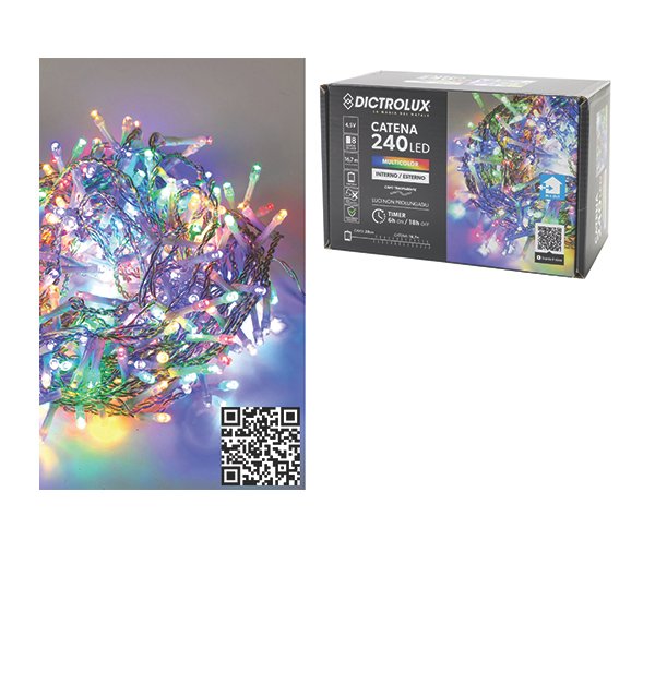 240 λαμπάκια μπαταρίας πολύχρωμα 16,7m λευκό καλώδιο [02450411]