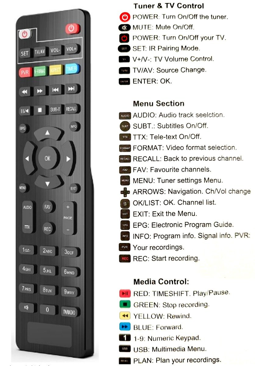 H συσκευασια περιέχει, τηλεχειριστήριο 2σε 1,καλώδιο usb τροφοδοσίας, ΙR Receiver (Ματάκι), Hdmi Καλώδιο