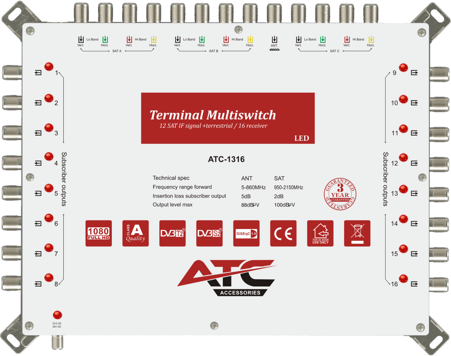 ATC Πολυδιακόπτης ATC-1316 (3 Sat + 1 Ter / 16 Εξόδοι) (03.002.0052)