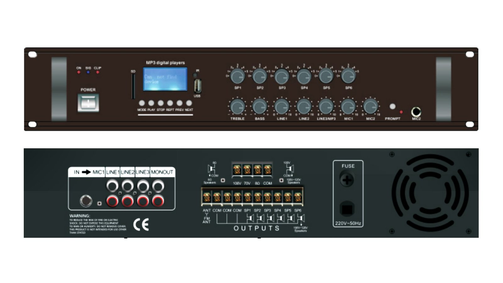Έξοδος: 4–16Ω, 70V, 100V