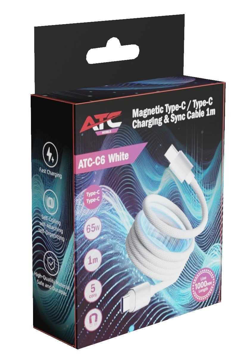 ATC-C6 Μαγνητικό Καλώδιο Φόρτισης & Μεταφοράς Δεδομένων Type-C σε Type-C 65W 1m Λευκό (20.003.0008)