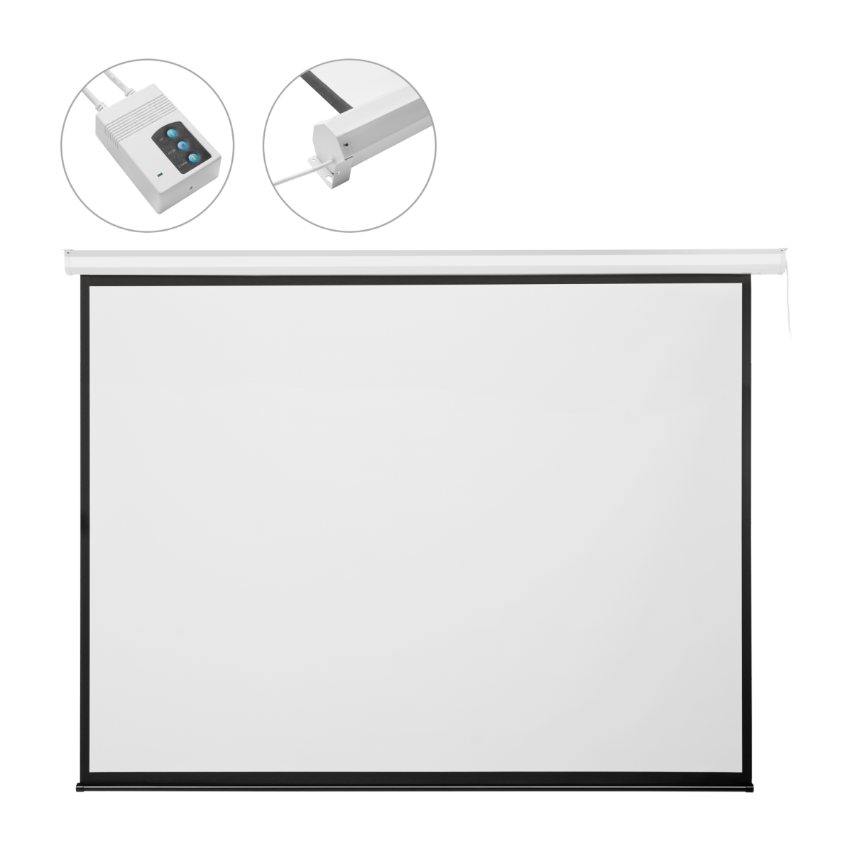 Αυτή η ηλεκτρική οθόνη προβολής είναι ιδανική για εκπαίδευση, επαγγελματικές παρουσιάσεις ή οικιακό home cinema. Διαθέτει συγχρονισμένο κινητήρα αθόρυβης λειτουργίας με μεγάλη διάρκεια ζωής και χαμηλή κατανάλωση ενέργειας. Το περιλαμβανόμενο τηλεχειριστήριο Ραδιοσυχνοτήτων (RF) επιτρέπει τον ελεύθερο χειρισμό της οθόνης μέσα στον χώρο. Ο διακόπτης τοίχου 3 κατευθύνσεων προσφέρει επιπλέον επιλογές ελέγχου. Το black-backed υλικό οθόνης αποτρέπει τη διέλευση φωτός για ανώτερη απόδοση χρωμάτων. Διαθέτει στάνταρ μαύρα περιμετρικά borders 4 πλευρών. Η matte white επιφάνεια με gain 1.0 και γωνία θέασης 160° είναι ανθεκτική και εύκολη στον καθαρισμό. Η επιφάνεια προβολής της οθόνης 112’’ είναι: 2.00 x 2.00 m.