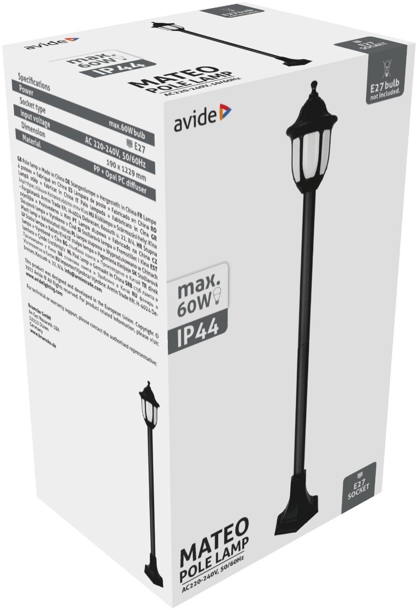 Avide Εξωτερικό Φωτιστικό Κολώνα Mateo-XL 122cm 1xE27 IP44 Μαύρο (15.001.1627)