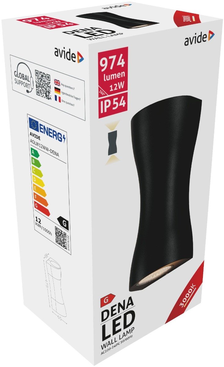 Avide Εξωτερικό Φωτιστικό Τοίχου Dena LED 12W Θερμό 3000K IP54 (15.001.0820)