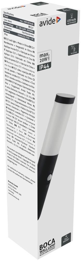 Avide Φωτιστικό τοίχου εξωτερικού χώρου Boca 1xE27 PIR IP44 Μαύρο (15.001.1579)
