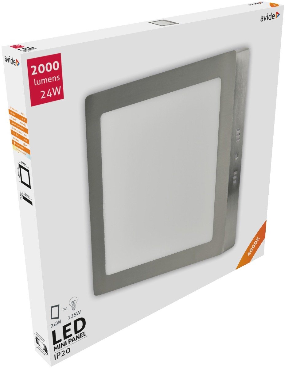 Avide LED Πλαφονιέρα Τετράγωνο Αλουμίνιο Σατέν Νίκελ 24W Λευκό 4000K (15.001.0674)