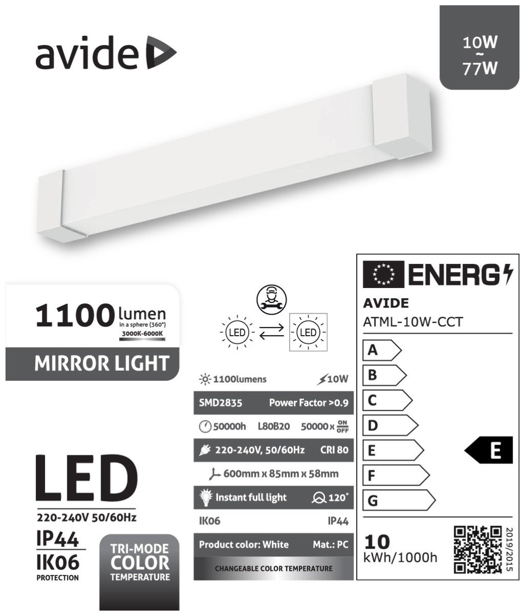 Avide LED Φωτιστικό Καθρέφτη 600mm 10W 1100lm (15.001.2042)