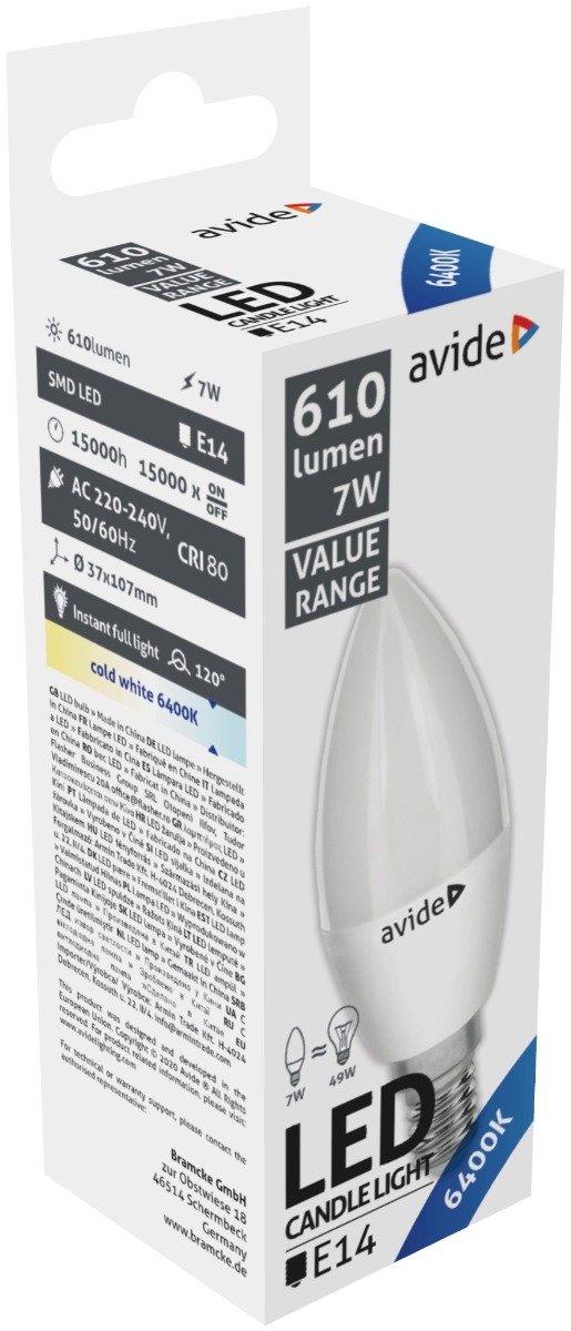 Avide Value LED Candle 7W E14 Ψυχρό 6400K 610 lumen