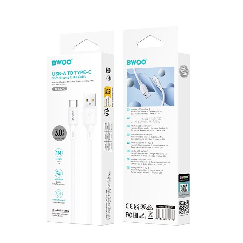 Το καλώδιο USB BWOO X329C είναι κατασκευασμένο από υγρή σιλικόνη υψηλής ποιότητας .