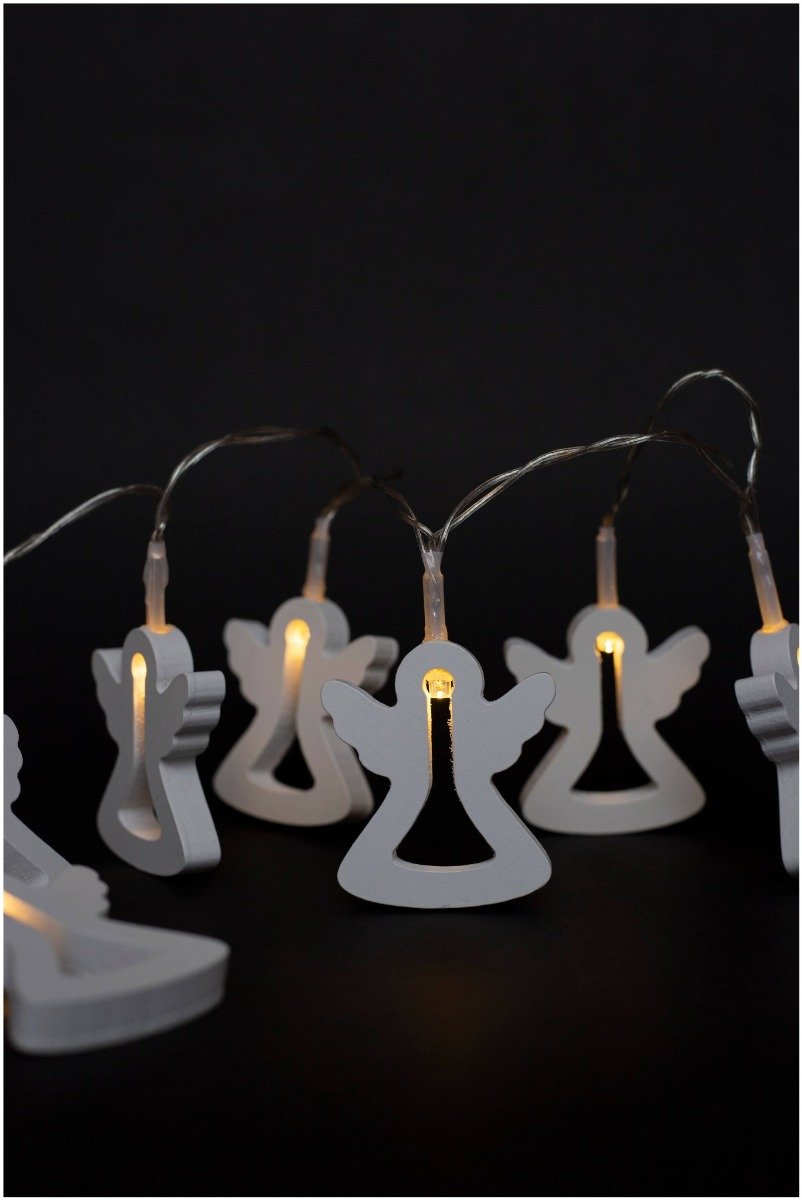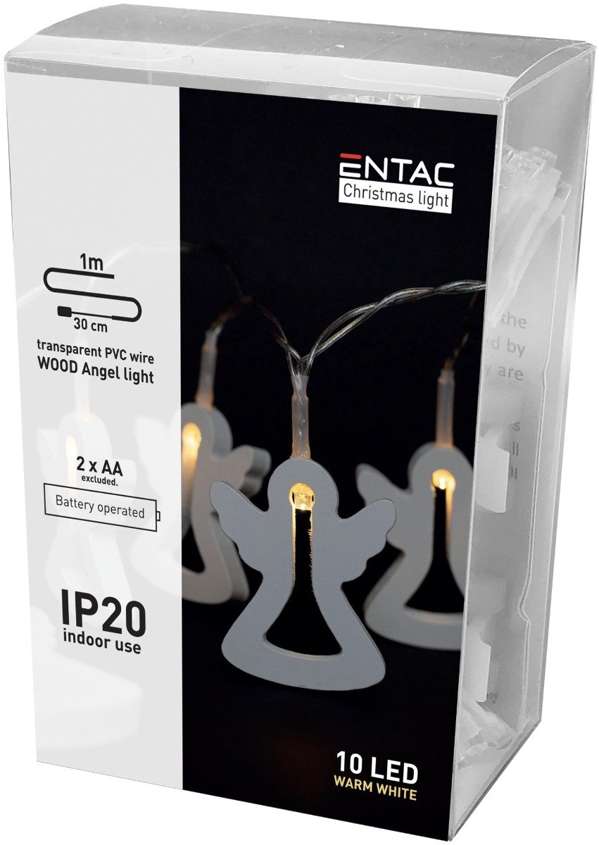 Entac Χριστουγεννιάτικα Εσωτερικά Ξύλινα Αγγελλάκια 10 LED Θερμό 1μ (2xAA Δεν περιλαμβ.) (15.004.0030)