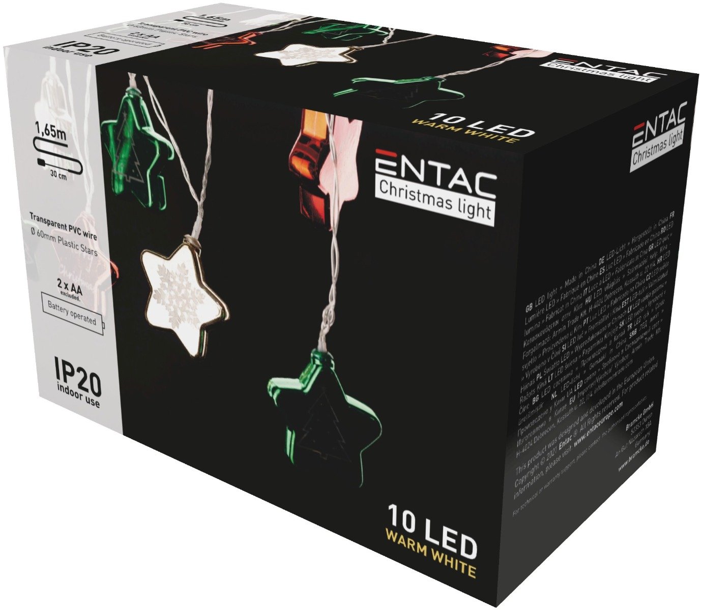 Entac Χριστουγεννιάτικα Εσωτερικά Πολύχρωμα Αστέρια 60mm 10 LED Θερμό 1,65m (15.004.0069)