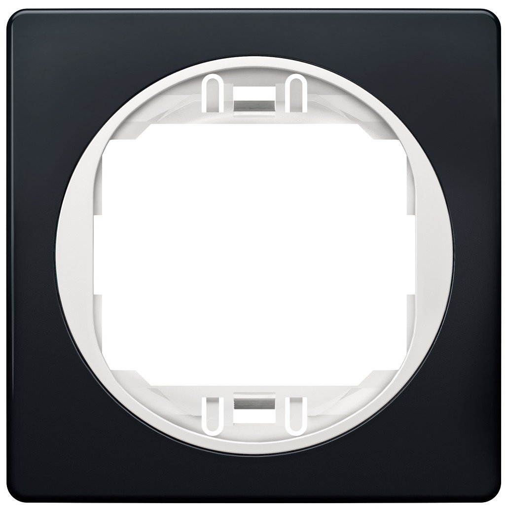 EON E6801.E10 One-gang frame 80×80, soft-touch black with white holder (15.005.0154)