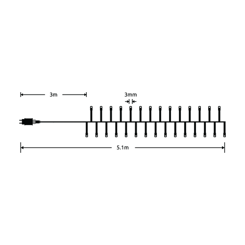 Με 384 LED ψυχρού λευκού χρώματος 10000 K σε πράσινο καλώδιο 5,1 μέτρων (συμπεριλαμβανομένου του βύσματος), διαθέτει 8 προγράμματα φωτισμού και λειτουργεί με ευρωπαϊκή πρίζα (το τροφοδοτικό περιλαμβάνεται στη συσκευασία).