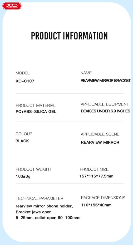 ■Τεχνικές παράμετροι: στήριγμα κινητού τηλεφώνου καθρέφτη οπισθοπορείας, άνοιγμα βραχίονα 5-25 mm, άνοιγμα τσοκ 60-100 mm: