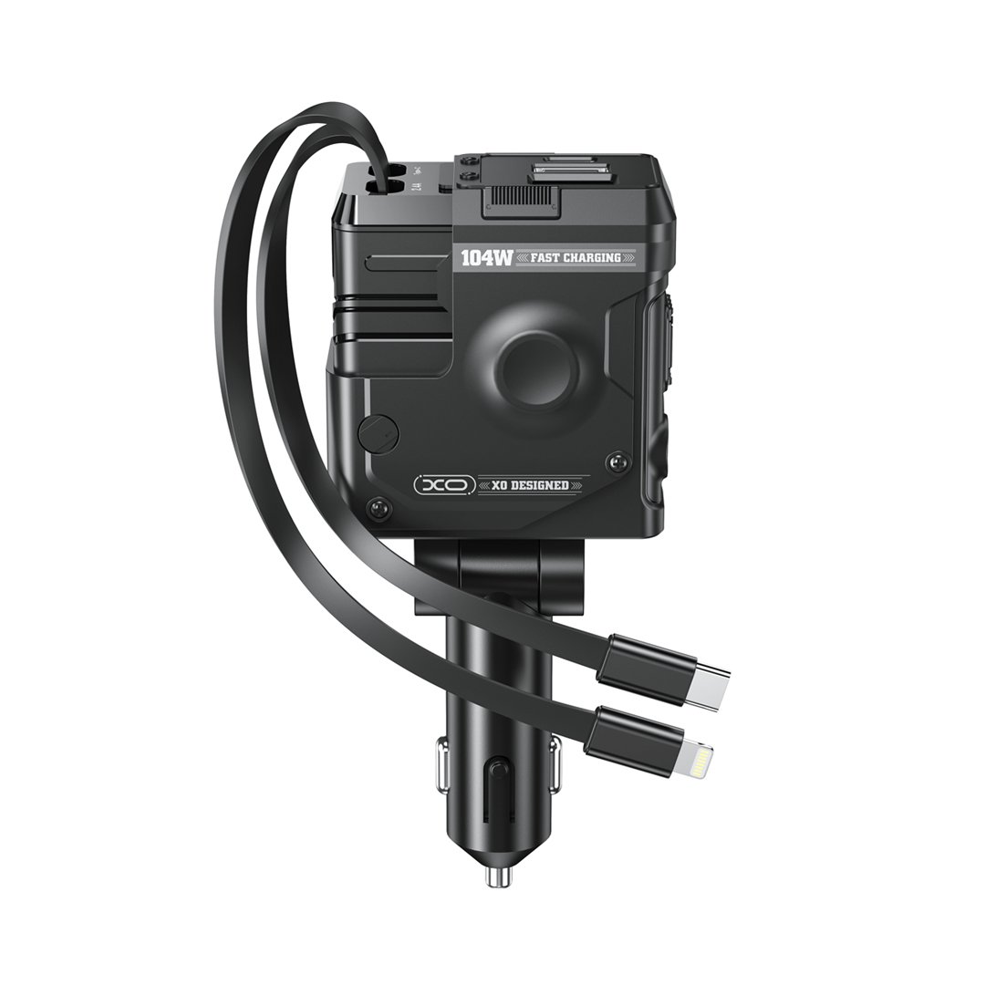 Το XO CC66 είναι ένας φορτιστής αυτοκινήτου εξοπλισμένος με 2 θύρες USB-C / USB-A, στις οποίες μπορείτε να συνδέσετε το κατάλληλο καλώδιο για τη φόρτιση κινητών συσκευών. Επιπλέον, είναι εξοπλισμένος με δύο επεκτάσιμα καλώδια, το ένα με ακροδέκτη USB-C και το άλλο με Lightning. Χάρη στις μικρές διαστάσεις του φορτιστή, η συσκευή καταλαμβάνει λίγο χώρο. Με τον φορτιστή αυτοκινήτου XO, δεν χρειάζεται πλέον να ανησυχείτε για μια αποφορτισμένη συσκευή κινητού ή tablet στο αυτοκίνητο. Εξοπλισμένος με υψηλή ισχύ 104W, θα σας επιτρέψει να φορτίσετε τρεις συσκευές ταυτόχρονα.