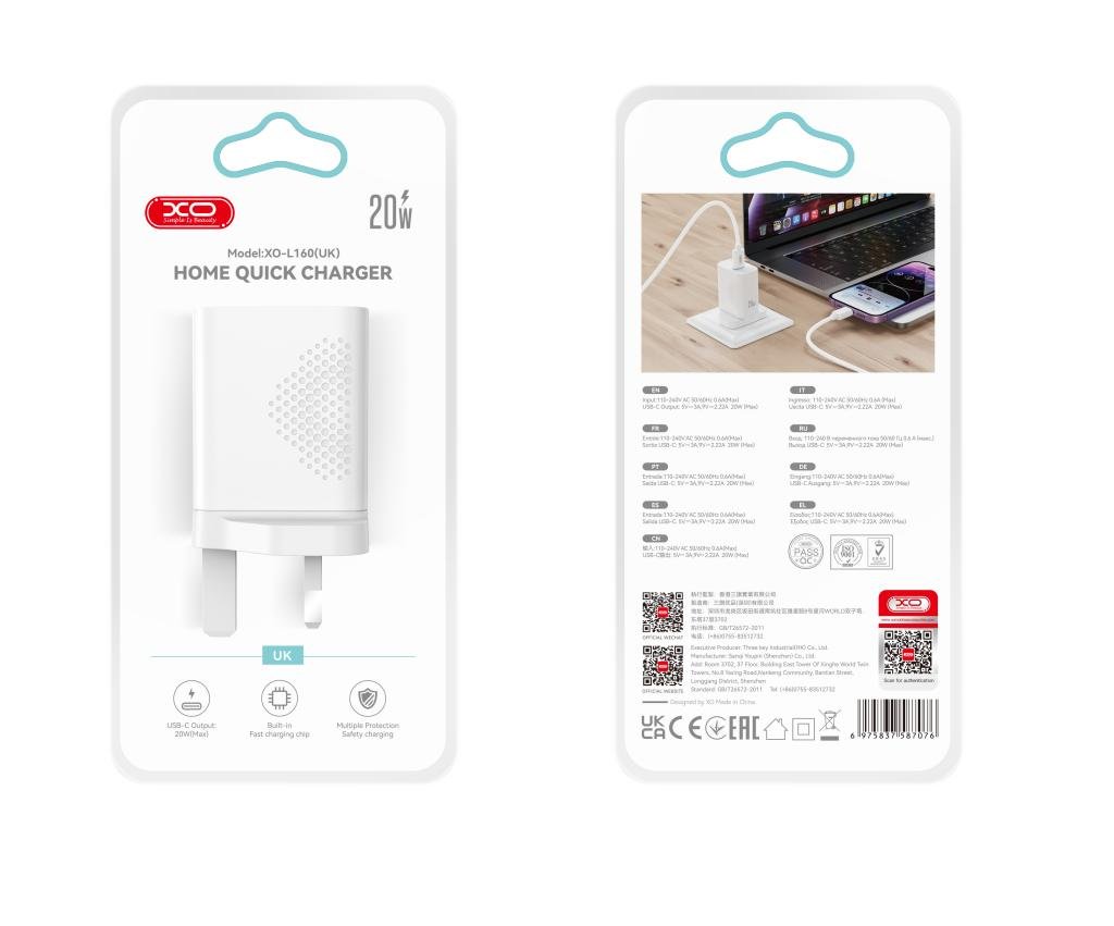 XO L160(UK) Φορτιστής Γρήγορης Φόρτισης 20W 1USB-C (16.006.0413)