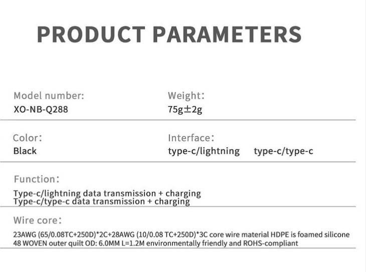 XO NB-Q288A Καλώδιο Κράμα Ψευδαργύρου Lightning σε Type-c 27W (16.005.0351)