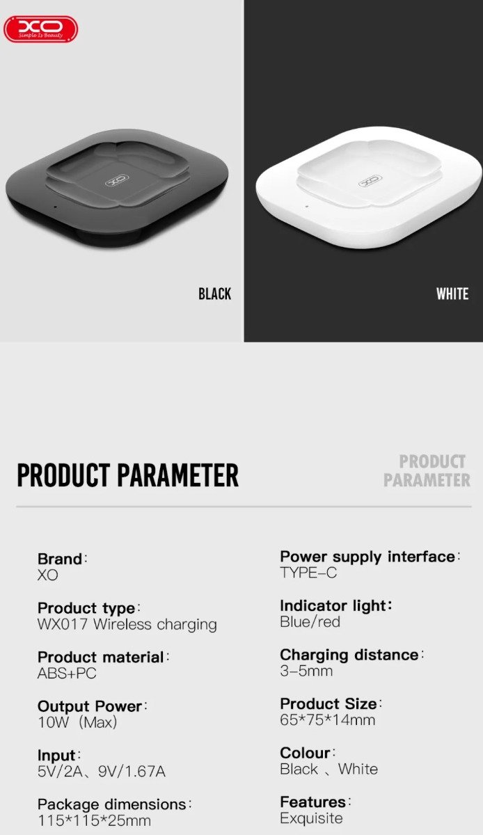 XO WX017 10W wireless QC Black